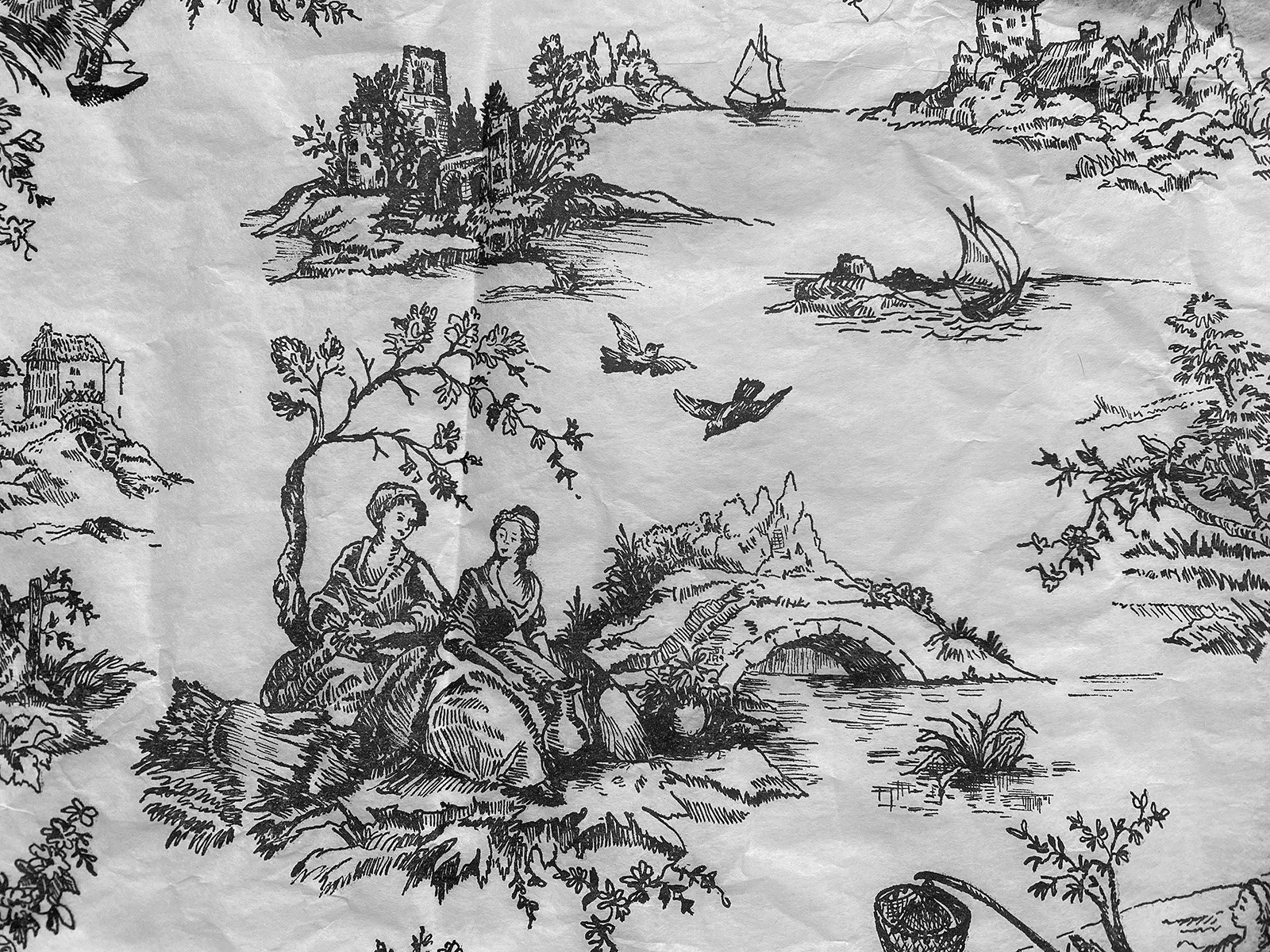 For our purposes, at this moment, I say let's begin by looking at a scene, preferably one with people in it. Now. Write but don't let them speak. To help you out, look at the two women in the picture above sitting together in this pretty, pastoral scene. There they sit, side by side, a bridge nearby and two birds above them flying in opposite directions. My first thought is they must be having a conversation, and that they know each other. But maybe they don't. Perhaps, they were friends but now they loathe each other. How can you write this without using dialogue?